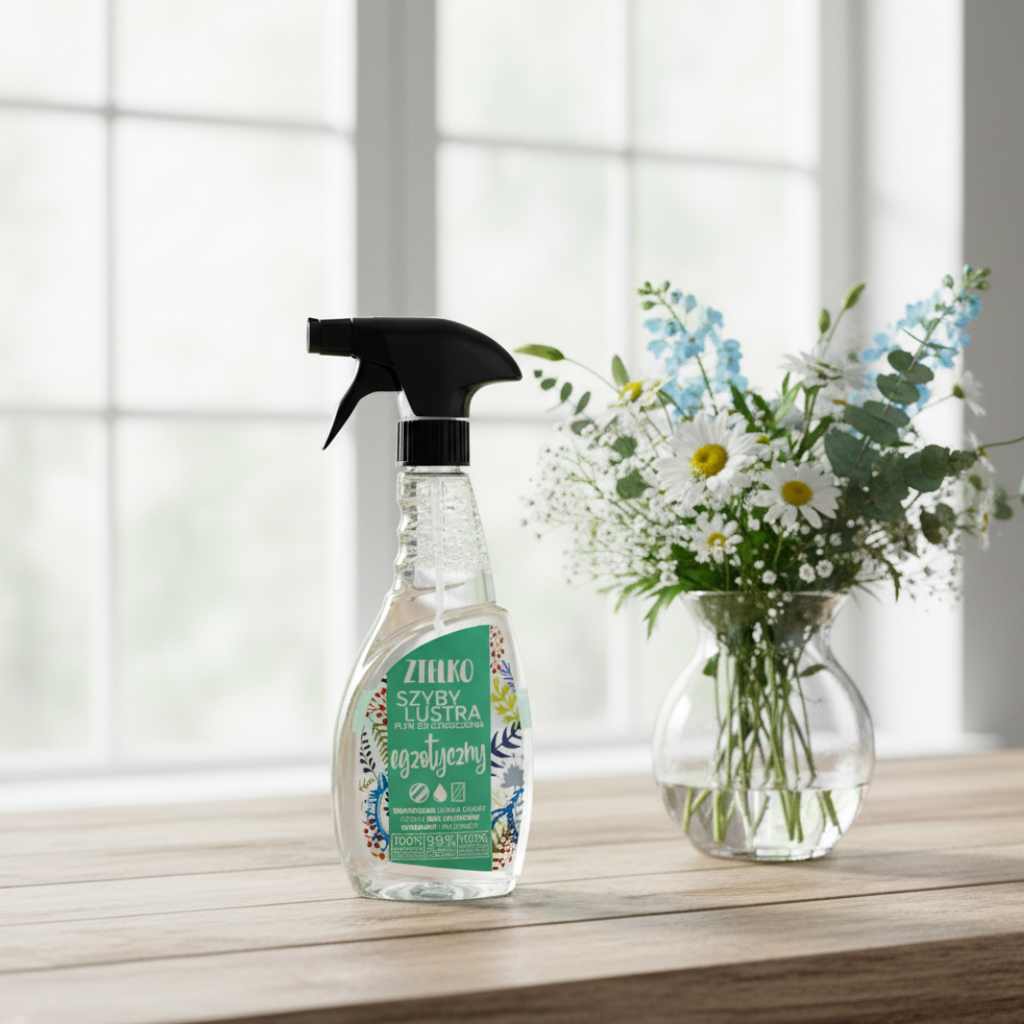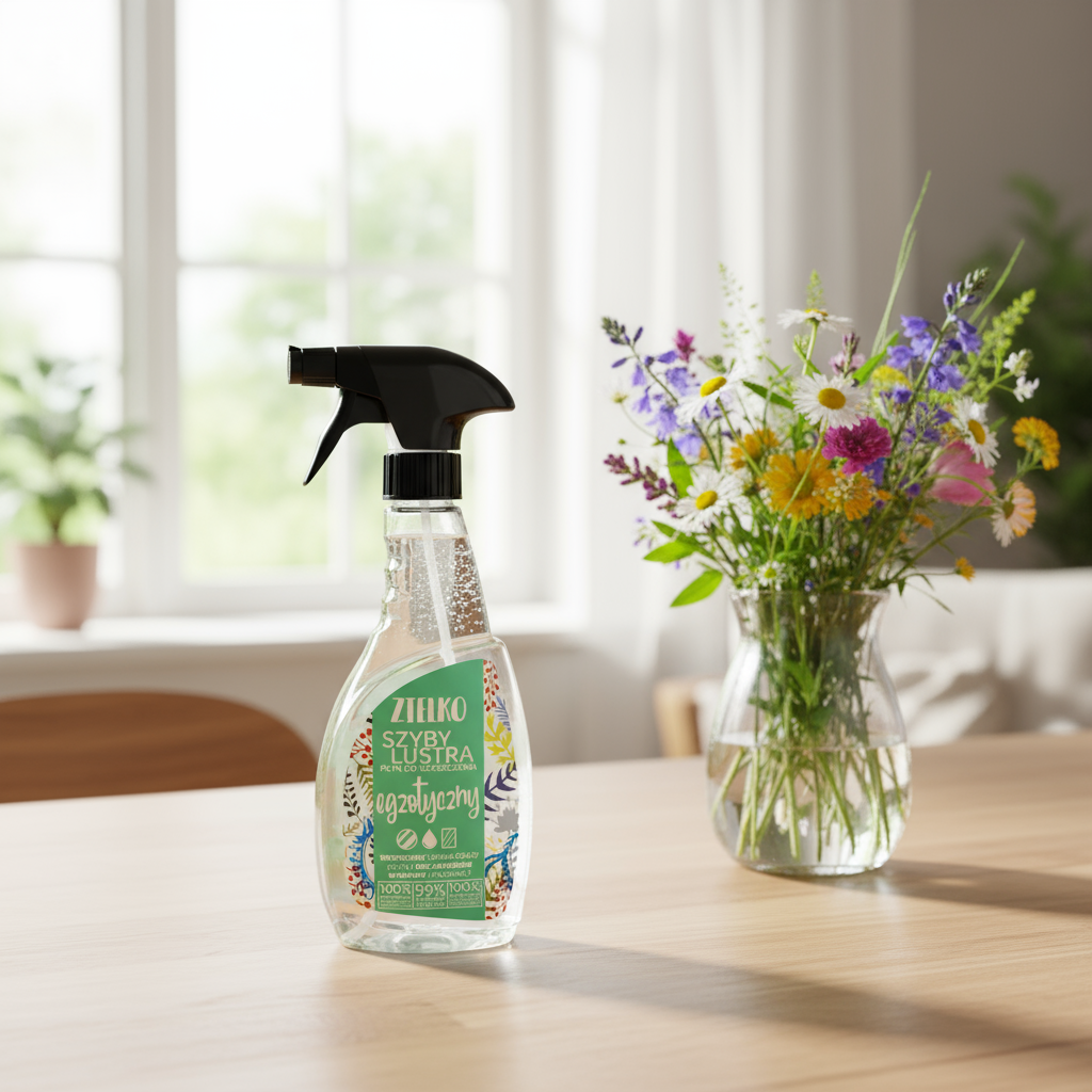 ZIELKO skutecznie czyści szyby, lustra i wszelkie gładkie powierzchnie szklane. Dzięki skoncentrowanej formule poradzi sobie z: